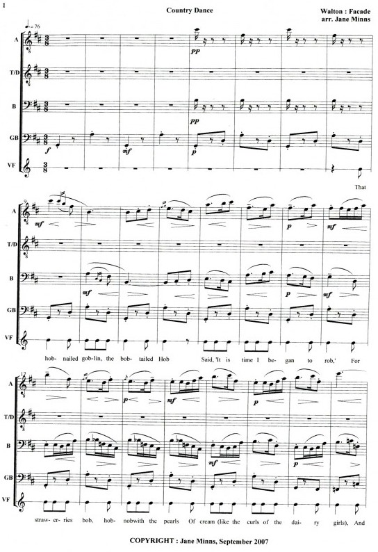 Challenging music arranged for Recorders. This is a setting of Edith Sitwell’s poem “That hodnailed goblin, the bob-tailed Hob.”