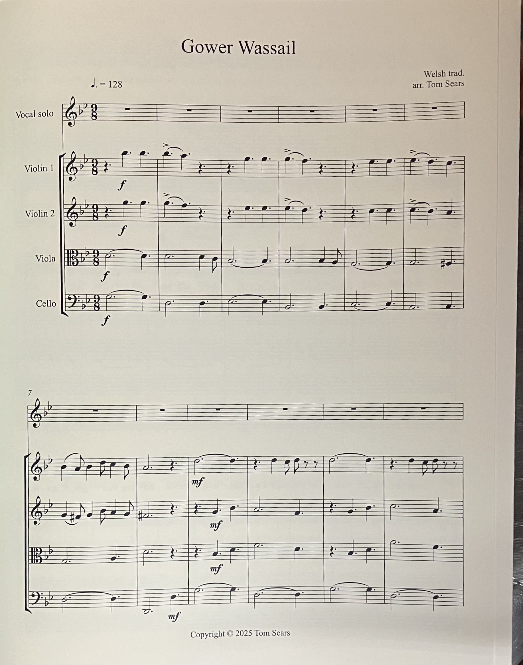 Gower Wassail is a wassail song from Gower in Wales celebrating the midwinter tradition wherein carolers go door to door seeking donations of money or food in exchange for the good luck wishes expressed in their song. The term Wassail is Old Norse or Old English meaning ‘be of good health.’ The viola and cello part can be substituted by tenor and bass viols.Â