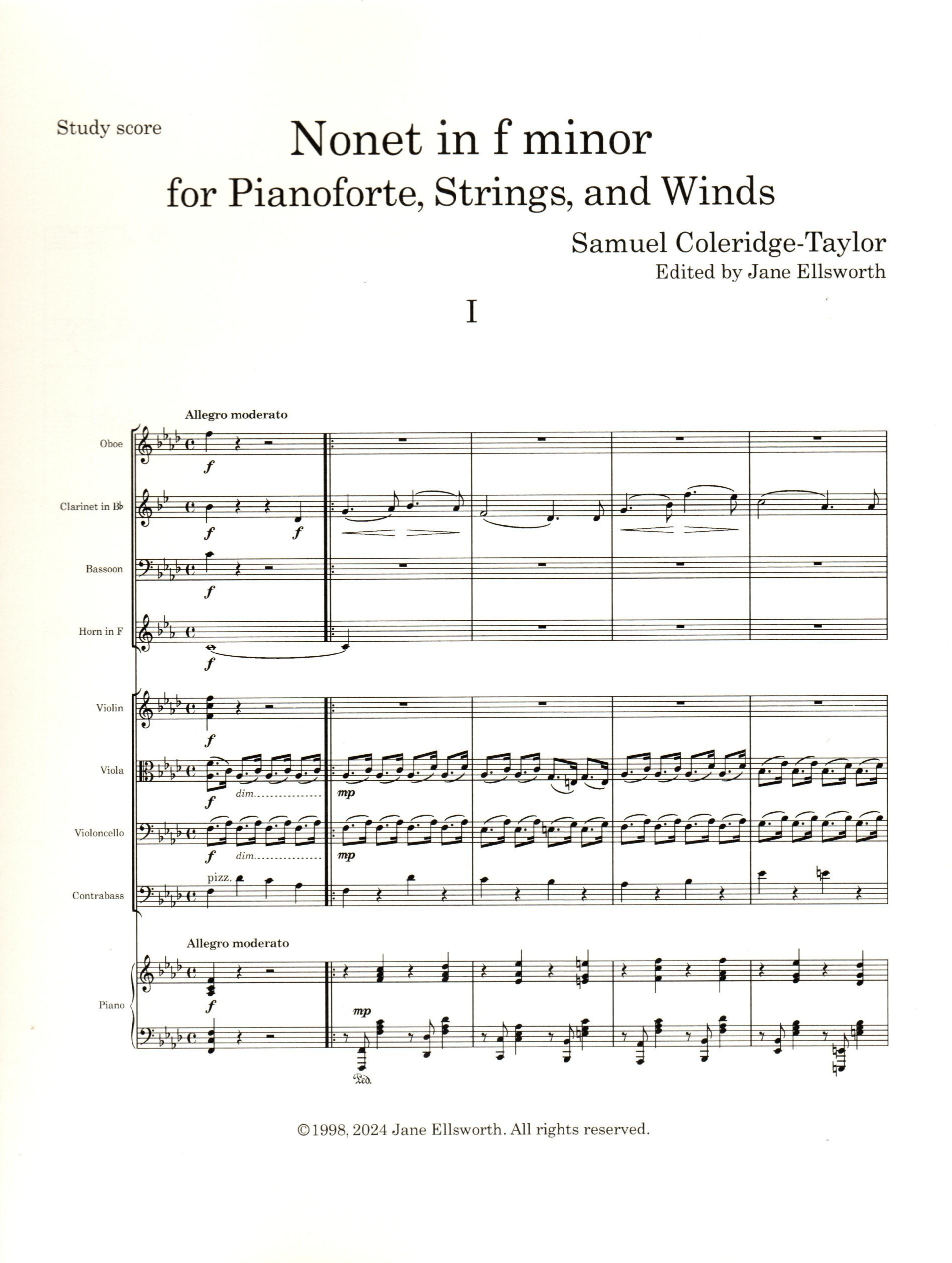 Nonet in f minor, Op. 2, study score